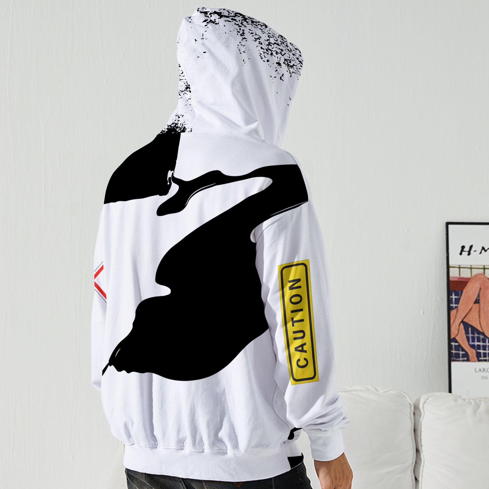 Dye-sublimation printing, Personalized all-over print hoodie for men.Each panel is cut and sewn together to ensure a flawless graphic.Features drawstring hood, long sleeves, front kangaroo pocket, elastic sleeve cuff and waistband.